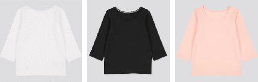 素材の比率はキッズ用が綿92%、ポリウレタン8%で、ベビー用が綿94%、ポリウレタン6%となっている。キッズ用半袖はホワイト・ブラックの2色、サイズは110㎝~160㎝、価格は590円(税込み、以下同じ)。キッズ用9分袖はホワイト・ブラック・ピンク・ブルーの4色、サイズは110㎝~160㎝、価格は790円。ベビー用は長袖のみで、ホワイト・ブラック・ピンクの3色、サイズは80㎝~100㎝、価格は790円。