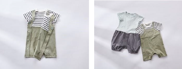 オールインワンなのに、まるで上下が分かれているように見えるカバーオール「セパオール」や、オムツをつけていてもお尻が目立たない「サマナルパンツ」など、これまでにありそうでなかった、ファッション性と実用性を両立させたベビー服を開発した。