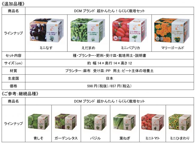 DCMnews|「DCMブランド 超かんたん!らくらく栽培セット」4品種を追加発売