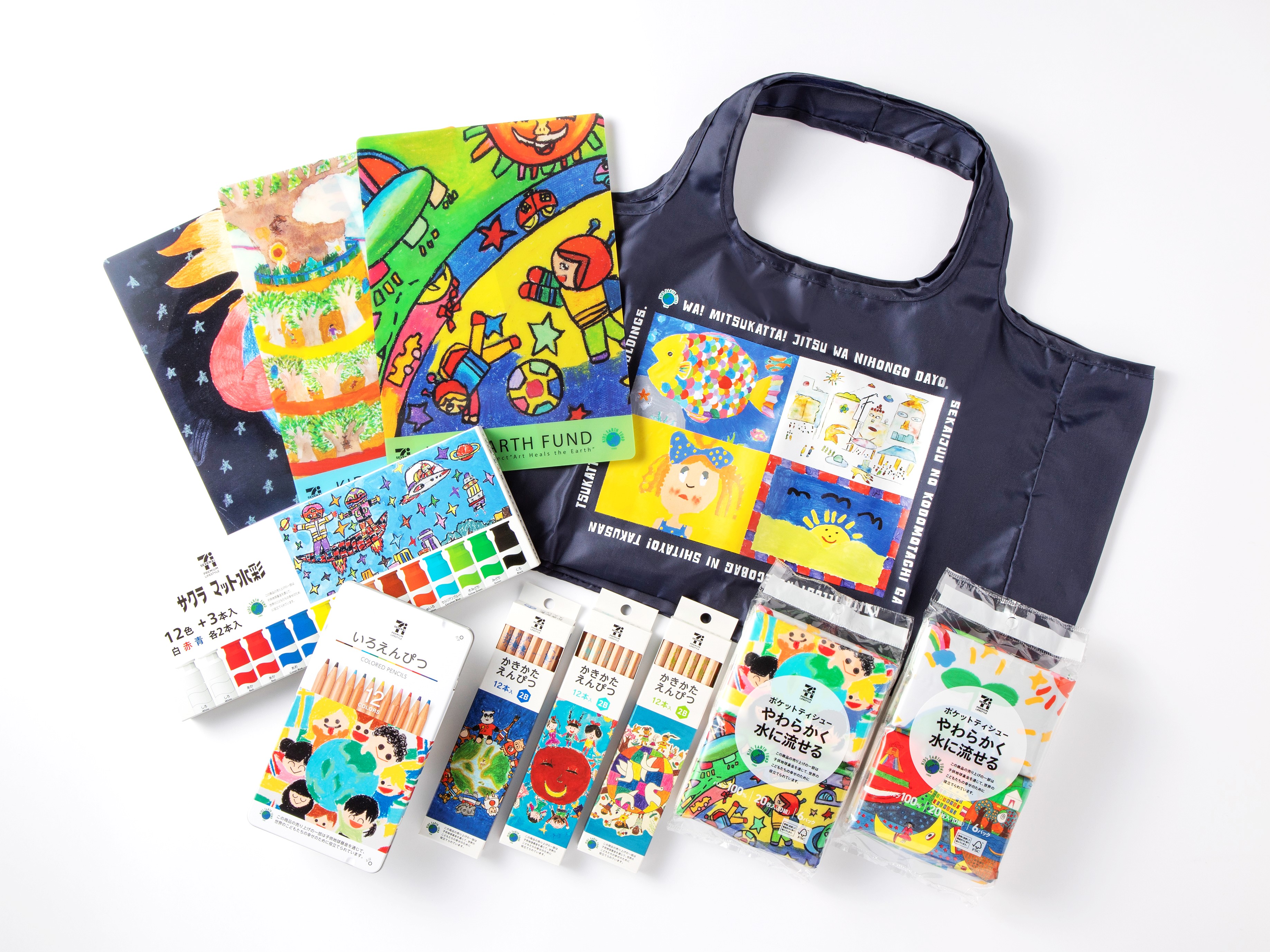 商品化されたのは「セブン&アイオリジナル 子供地球基金アートエコバック」(本体価格298円、以下同)や「セブンプレミアム ライフスタイル かきかた鉛筆(2B・12本入)」(538円)、「同 色鉛筆(12本・缶入)」(748円)、「同 下敷き(B5)」(248円)、「同 マット水彩絵の具(12色+3本入)」(948円)、「同 ポケットティシュー6P」(105円)。