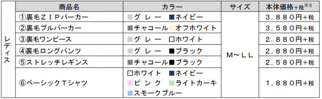 パーカー、パンツ、Tシャツなどのアイテムのデザインに応じて新しいロゴも採用した。素材として使用したのはオーガニックコットンやリサイクルポリエステルなど。また、パッケージには紙素材などを使用し、環境に配慮している。商品は6品番(15アイテム)で、価格帯は1880円~3880円(本体価格)。なお、商品名の前には「トップバリュ キャサリンハムネット レディス」が付く。