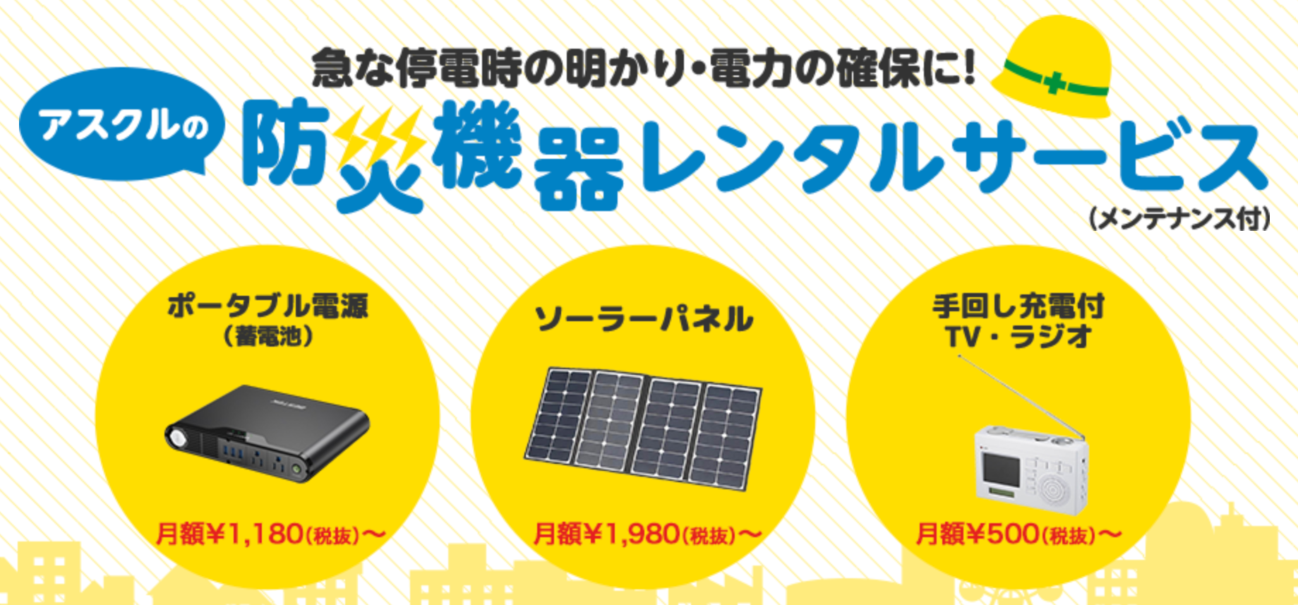 アスクルnews|防災機器の月額レンタルサービス開始/ポータブル蓄電池など