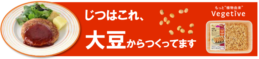 イオンは2020年10月に、「大豆を使ったハンバーグ」や「豆乳とココナッツオイルからつくったシュレッド」など、植物性の原材料に置きかえたトップバリュVegetiveシリーズを発売。生産時に排出される温室効果ガスや必要な穀物、水の量など地球に与える負荷が少ない「植物性たんぱく質」を中心に、さまざまな植物性原料を使用して商品化している。