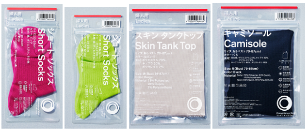 商品は男女兼用(ユニセックス)ではアウターTシャツが1089円、ラインソックスが429円、今治タオル539円、エコバッグ539円、婦人用ではスキンタンクトップ1089円、キャミソール1089円、ショーツ(フラット)649円、ショートソックス429円、紳士用ではインナーTシャツ(Vネック)1089円、ボクサーパンツ649円、トランクス649円、くるぶし丈ソックス429円など。価格はすべて税込価格。