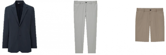 「感動スリムフォットジャケット」は、グレー、ブラック、ネイビーの3色展開で価格は7990円。「感動イージーパンツ」はグレー、ブラック、ネイビー、オリーブの4色で3990円。「感動イージーショートパンツ」はブラック、オリーブ、ベージュの3色、2990円。すべて税込価格。