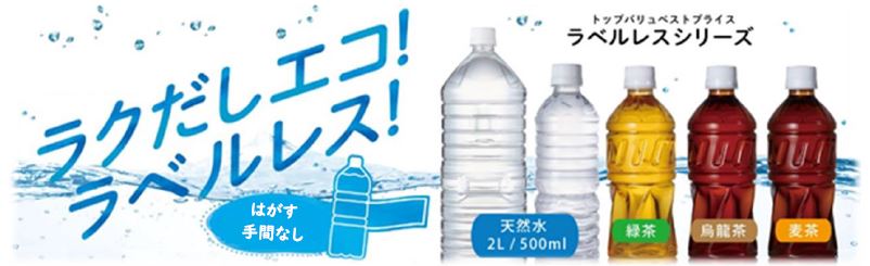イオンは2月に北海道、関東、東海で「トップバリュベストプライス ラベルレス天然水」(2000㎖)をケース販売したところ、「ラベルをはがす手間が無く、とても便利」「エコ活動に参加させてもらえる良い取り組み」と好評を得た。ラベルレスはプラスチックごみが減ることによる環境負荷の低減や捨てる時にラベルをはがす手間が省け、毎日のごみ分別の負担軽減にもつながる。