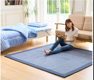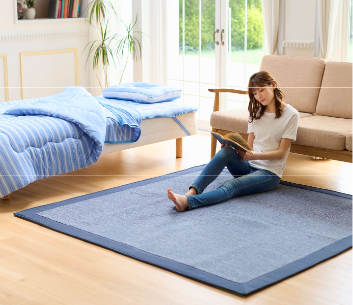 「ひんやり撥水ラグ」の表地には接触冷感・抗菌防臭・撥水・防汚(油性汚れが落ちやすい)加工を、裏地は滑り止め加工を施し、洗濯機で洗濯できる。約2畳用185×185cm(5170円)、約1.5畳用130×190㎝(4070円)、約3.0畳用190×240㎝(7370円)、約4.0畳用190×290㎝(9570円)の4サイズを揃える。