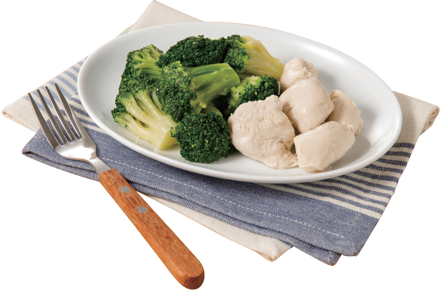 「ブロッコリーと鶏ささみ肉の洋風温サラダ」498円(税込537円)は、国産鶏ささみ肉をしっとり柔らかく仕上げ、 洋風だしのやさしい味付けで、 素材本来の味を活かした。ヘルシーなのにボリューム感もある。