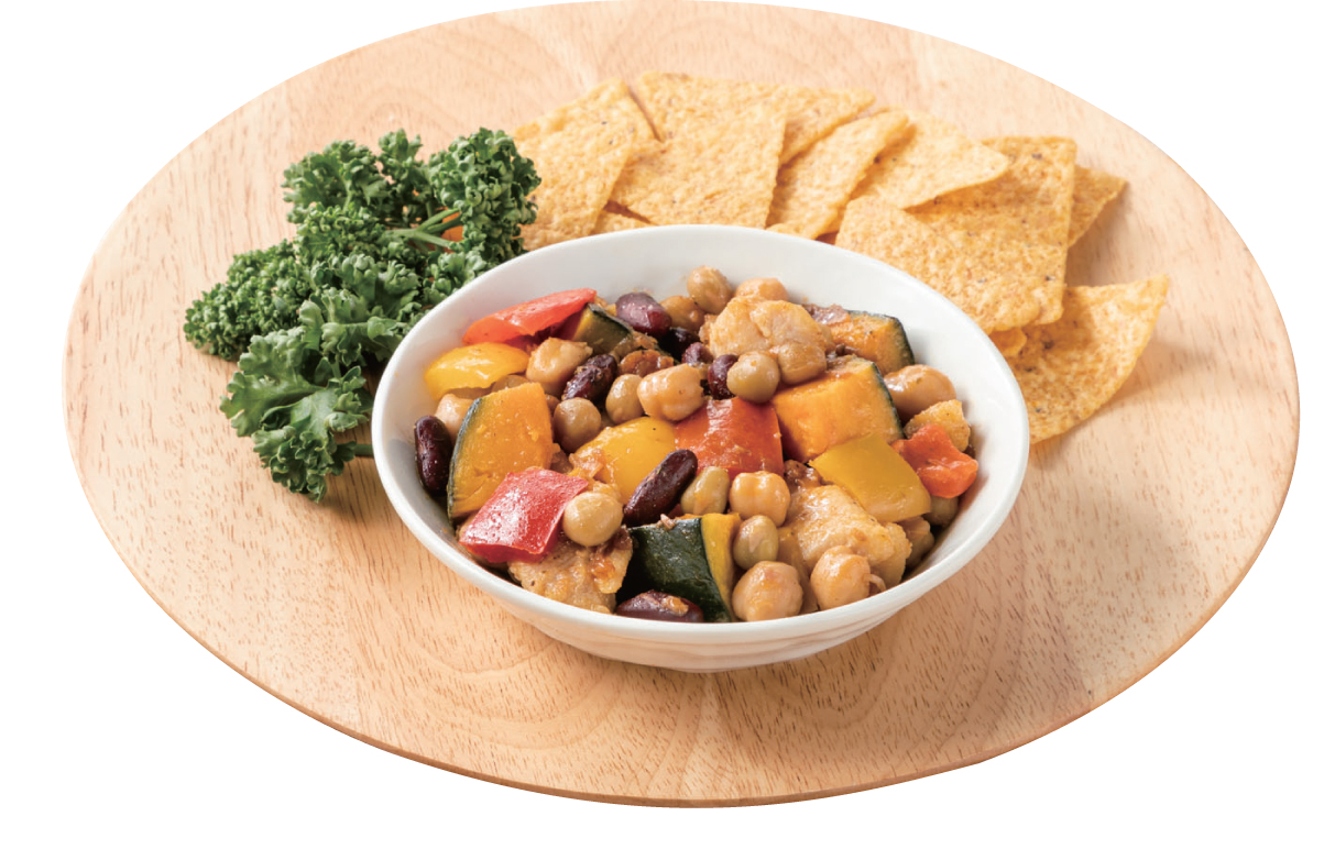 高タンパク質で低糖質な国産鶏ささみ肉や、緑黄色野菜、食物繊維が豊富な豆を使用して、ヘルシーなメニューに仕上げている。