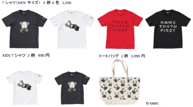 このコラボレーションは、「KAWS TOKYO FIRST」のためにデザインされた、全7種のカプセルコレクションである。商品は、KAWSの代表的なキャラクター「COMPANION」や展覧会ロゴがデザインされたUTやトートバッグ。また、大人と柄がリンクしたキッズUTもラインアップする。