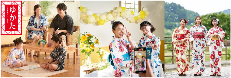 ゆかたは、もともと家庭でのくつろぎ着として親しまれてきた。「ゆかたでイエナカ」提案では、湯上りやちょっと贅沢な食事、手持ち花火など、家族とゆかたを着る楽しみ方をお勧めする。また「ゆかたでマチナカ」は、夏のおしゃれ着としての着用と、日傘・帽子などとの合わせ方を提案する。これらは参考動画を流してSNS映えすることもアピールしていく。