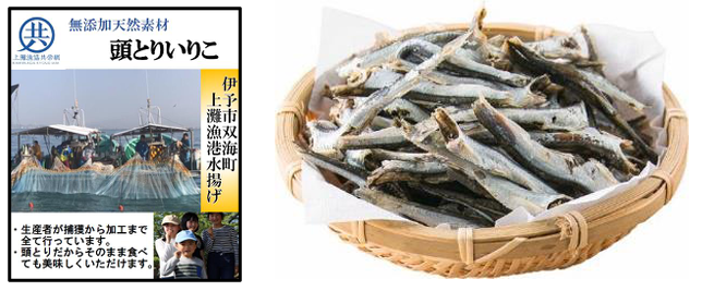 今年4月、愛媛県伊予市双海町の上灘漁港で発生した大規模火災により生産者が甚大な被害が発生した。そこで同社は地域貢献のため、上灘漁協共栄網と共同で商品を開発し、水揚げされた「頭とり上灘いりこ」を愛媛県フジ45店舗で販売する。