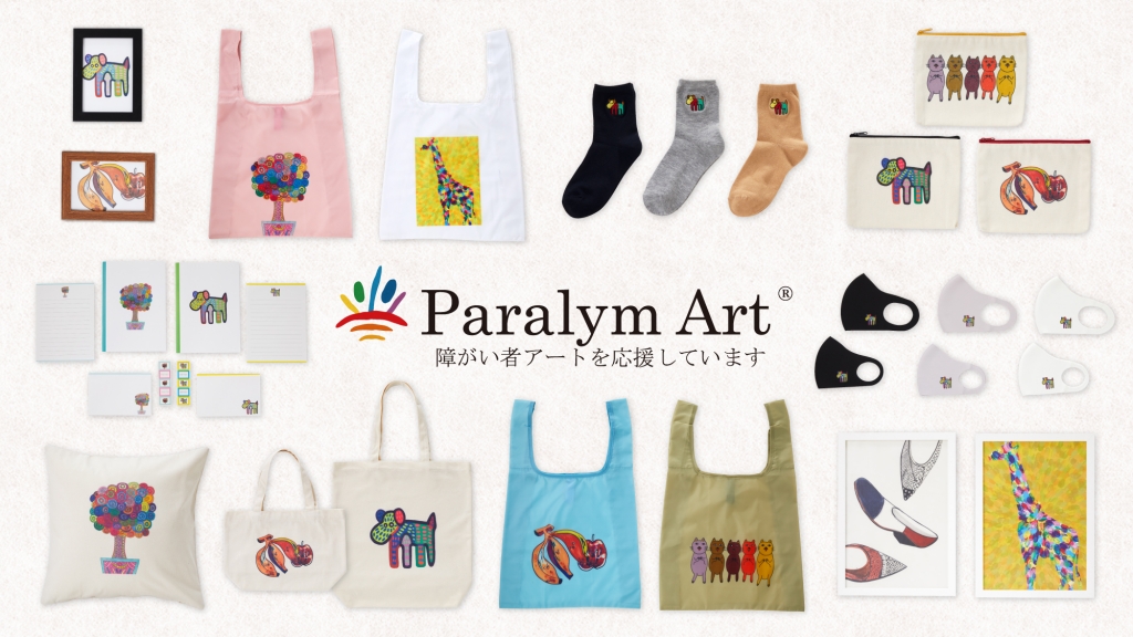 新商品は、マスク・トートバッグ・ポーチ・靴下などの季節に関わらず使えるコットン製品や、アート作品を身近へ感じることのできるフォトフレームなど45製品。製品代に含まれる絵画ライセンス利用料はパラリンアート事務局を通して作者に寄付する。