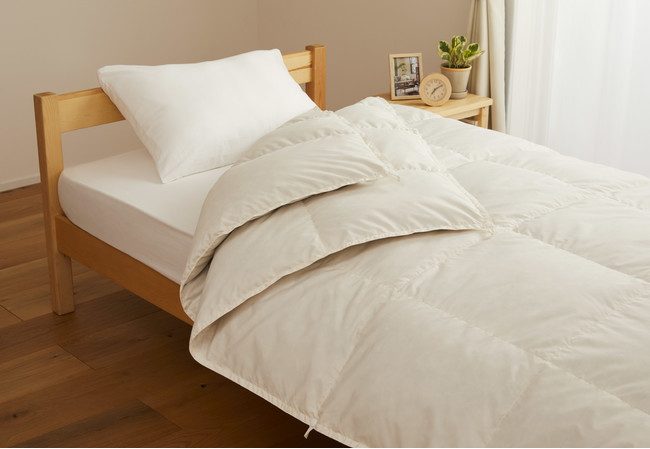 肌掛ふとんと合掛ふとんの2枚の羽毛ふとんを縫いつけたスナップボタンで着脱し、組み合わせることができる。たとえば、まだ肌寒い春先や涼しくなる秋口には合掛ふとん1枚、夏は肌掛ふとん1枚、冬は2枚を合わせて使う。羽毛には撥水加工を施してあるので洗濯機で洗うことができる。規格はシングルロング(150×210cm)で、価格は1万4800円。