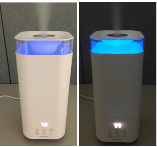 大容量4.6Lの水が入り、上から給水できるのでタンクの持ち運びは不要。湿度センサーによって部屋の湿度を自動で適切にコントロールする。空焚きを防ぐ水なし自動OFF装置と切タイマー(1,2,4,8時間)機能が付いている。間接照明(ブルーライト)としても使用できる。カラーは白色、価格は5980円。