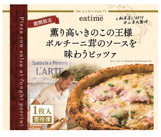 期間限定で再発売するのは、冷凍の「薫り高いきのこの王様ポルチーニ茸のソースを味わうピッツァ」。1枚入りで780円。世界三大きのこの「ポルチーニ茸」のソースに、プロシュットコット (イタリア産豚のもも肉のハム)、モッツァレッラチーズ、パルミジャー