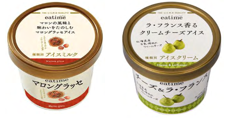 また秋季限定で人気だったアイス2品も再発売する。「マロンの風味と味わいをたのしむマロングラッセ」はイタリア産マロンペーストとダイスカットした栗甘露煮を使用。マロングラッセをイメージし、洋酒を効かせた大人向けのアイス。「ラ・フランス香るクリームチーズアイス」は北海道産生乳からつくったクリームチーズのアイスに、山形県産の洋なしラ・フランスソースをマーブル状にして入れこんだ。両品とも122mlで188円。