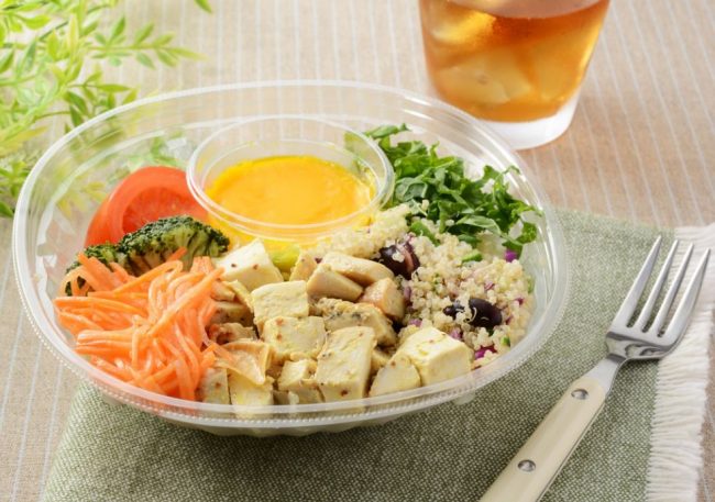 •「1食分の野菜が摂れるチキンとキヌアのサラダ」599円