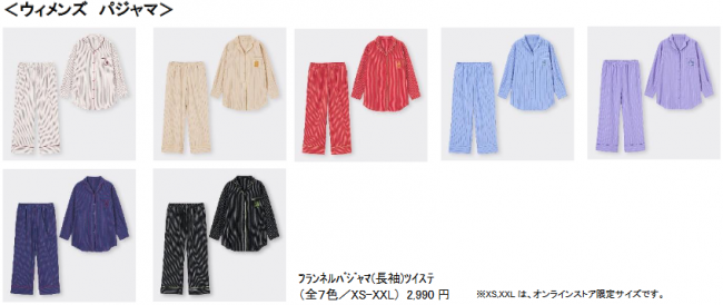 フランネルパジャマは7色展開で、サイズXSからXXL各2990円。パジャマと揃いのポーチは990円。「#4me by GU」のマルチパレットは1990円。