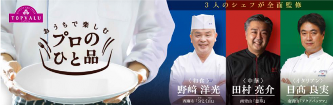イオン(株)(千葉市美浜区、吉田昭夫社長)は10月11日(月)から、全国の「イオン」「イオンスタイル」「マックスバリュ」の約3000店舗で、「トップバリュ プロのひと品」シリーズ計28品目を発売する。同シリーズは、和食を西麻布「分とく山」の野﨑洋光総料理長、イタリアンを南青山「アクアパッツァ」の日髙良実シェフ、そして中華を南青山「慈華」田村亮介シェフがそれぞれ監修した。