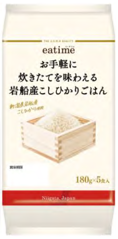 粘りと旨味のバランスが取れたこしひかりごはんは、新潟県北部で収穫される岩船産こしひかりを使用している。電子レンジで手軽に炊きたてを味わえる。180g5食入り498円(本体価格)。