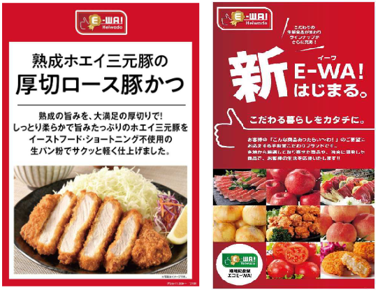 平和堂では2014年4月から加工食品・日配品を中心に「E-WA!」を展開。ブランド力の強化を目指し、平和堂が最もおすすめするこだわった商品を「E-WA!」ブランドへ刷新し、2021年6月25日からは「新E-WA!はじまる。」として新たに生鮮食品を、さらに8月28 日からは衣料品・くらしの品の展開を開始している。