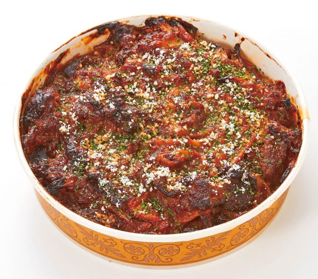 一つは、「アンガス黒牛とクラッシュポテトのデミグラス焼」。アンガス黒牛ばらうす切り肉、玉ねぎスライス、 コクのあるデミグラスソースの3つを混ぜ合わせ、たっぷりのクラッシュポテトの上にのせてオーブンで焼き上げた。クリスマス向けの洋風大皿メニューとして3~4人向けに開発した3~4人前大1パックが本体価格798円(以下同)、1人前小1パックが298円。