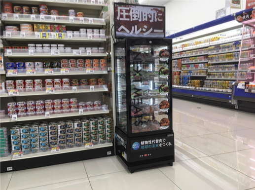 なお宮城丸森店、仙台袋原店を除く10店舗では、代替肉の認知度を向上させるため、薬王堂がデザイン・制作した専用冷蔵ケース 「NEXT スタンド」を設置して展開する。専用冷蔵ケースを使った小売店での販売はネクストミーツにとって今回が初となる。