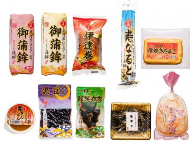 EC販売用セットは、おせち10品スタンダードセットと、それに5種類を追加したA・B・Cセットの計4パターンを展開する。スタンダードセットは御蒲鉾 赤板、御蒲鉾 白板、伊達巻、寿なると、厚焼きたまご、つぶつぶ栗きんとん、黒豆、一口鰊昆布巻、田作り、なます入りで1388円(税込み1500円、以下同じ)。