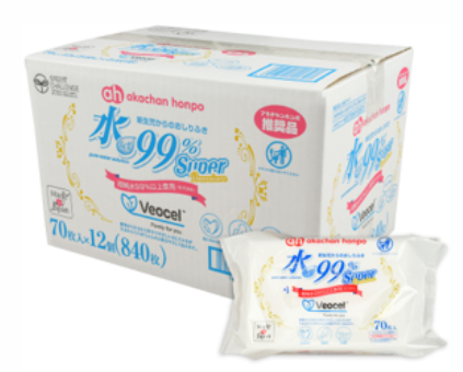 (株)赤ちゃん本舗(大阪市中央区、味志謙司社長)は12月17日(金)、植物由来のセルロース繊維をシートに使用したオリジナル商品「水99%Super 新生児からのおしりふきプレミアム Veocel™ (ヴェオセル™)」を、全国のアカチャンホンポとネット通販「オムニ7」で販売する。
