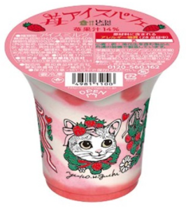 「Uchi Café苺アイスパフェ」は税込198円で、苺アイスとミルクアイスに、甘酸っぱい苺ソースを合わせている。食品表示などは蓋に記載し、カップ容器にはイラストのみをプリントしている。