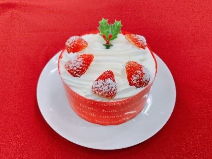 ホイップクリームを使用した4号サイズの苺のショートケーキ。ホイップクリームには北海道生クリームをブレンドした。フレッシュな苺を5個トッピングし、柊を飾り付けた。子どもから大人まで大人気の王道ケーキ。価格は980円(本体価格、以下同じ)。