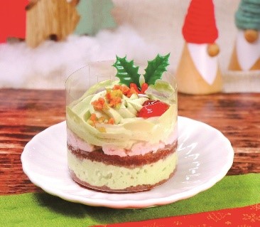 5層仕立てのプチタイプのクリスマスケーキ。ピスタチオのムースとホイップを使用し、やさしい酸味のストロベリーと組み合わせた。それぞれの層の掛け合わせを楽しめる。価格は298円。