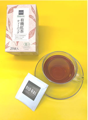 スリランカ産の有機セイロン茶葉を使用し、クセがないので飲みやすく、コクや優しい甘みも感じる。通常のティーバッグは紙の臭いを消すために漂白剤を使用しているものが多いが、「BIO-RAL有機紅茶ティーバッグ」は無漂白フィルターを使用している。また、ホッチキスも使用していない。20袋入りで本体価格238円。