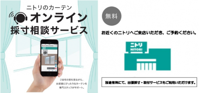 ニトリの従業員とスマートフォンやタブレット端末のビデオ通話で相談しながら、お客自身が採寸するのをサポートする。従業員は、お客が採寸する様子や、窓・レールの仕様を見ながら正しい採寸の仕方を説明する。また、窓の形状や使用環境に適した商品を提案し、部屋に合ったカーテン選びを手伝う。このサービスは事前に店舗から申込みをすると無料で利用できる。