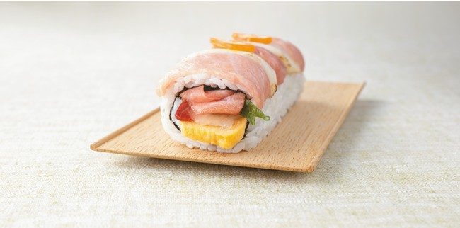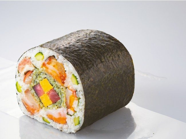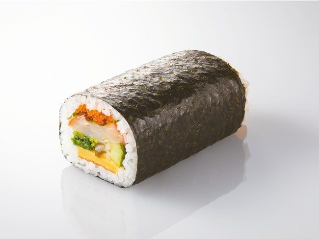 長崎県産本まぐろ、長崎県産炙りくえ、出汁巻、黒瀬ぶりなど、ひと巻きで食の宝庫を一周できる。福岡で加工した明太子と長崎産のからすみがアクセントになっている。