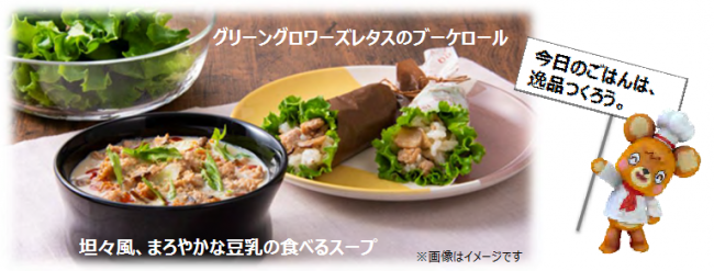 ユナイテッド・スーパーマーケット・ホールディングス(株)(U.S.M.H)のプライベートブランド商品「eatime chef」から、ミールキットの新商品「坦々風、まろやかな豆乳の食べるスープ/グリーングロワーズレタスのブーケロール」が1月17日(月)に発売された。新商品は、野菜をたっぷり食べられるスープと、柔らかなグリーングロワーズレタスで肉そぼろ混ぜご飯を巻いた、手巻き寿司風ご飯で、1人前で2分の1日分の野菜が摂取できる。