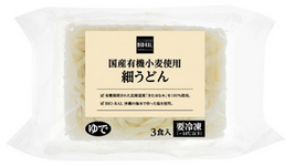 冷凍食品の「BIO-RAL 国産有機小麦使用細うどん」は、北海道産の有機小麦を100%使用している。温かいうどんでも冷たいうどんでも調理できる。