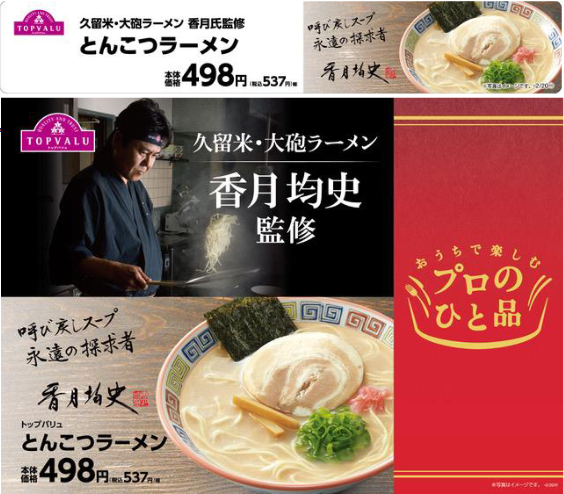 ミニストップ(株)(千葉市美浜区、藤本明裕社長)は、「トップバリュ とんこつラーメン」を2月8日(火)から国内のミニストップ店舗で発売する。商品は福岡県久留米市のとんこつラーメン専門店「久留米 大砲ラーメン」店主の香月均史氏が監修した。販売価格は税込537円。