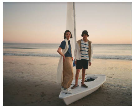 コレクションのテーマは 「At Home with the Sea」。島国である英国のセーリング文化から着想を得た。ポップな色合いのヨットの刺繍が施されたシャツ、キャップ、靴下のほか、ノットデザインのドレスやヨットパーカなど青い空と海に映えラインナップとなっている。撥水機能やメッシュ素材などUNIQLOならではの機能性に、パッチワークやアシンメトリーなどJW ANDERSONのアイコニックな要素を組み合わせることによって、着心地の良さとデザイン性を両立させた。