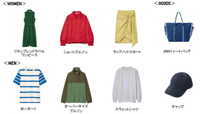商品はWOMENが 12アイテム、 MENが10アイテム、グッズが4アイテム。価格はアウターが4990円~7990円(税込み、以下同じ)、ボトムスが2990円~4990円、ワンピース3990円~4990円、シャツ2990円~3990円、カットソー1990円~3990円、グッズ390円~3990円。