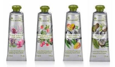 <左からリンシングビネガー(ヘアリンス)、エコボディウォッシュ(ボディシャンプー)、ハンドクリーム(4種)、ヘルシースカルプシャンプーとコンディショナー>