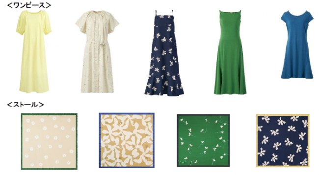 商品はウィメンズ全6アイテムで、価格は税込みでワンピース1900円~4990円、ストール1990円。