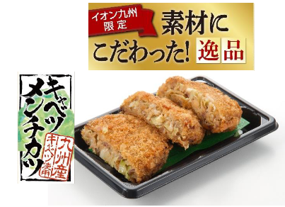 イオン九州では、九州の生産者・取引先と、地産地消・地産域消を推進している。2021年度から地域商品の開発を強化するため、プロジェクトを立ち上げて、九州の「安全・安心」「おいしい食」の発見・発信を行っている。「キャベツメンチカツ」は、「素材にこだわった逸品」として開発した商品の第11弾になる。