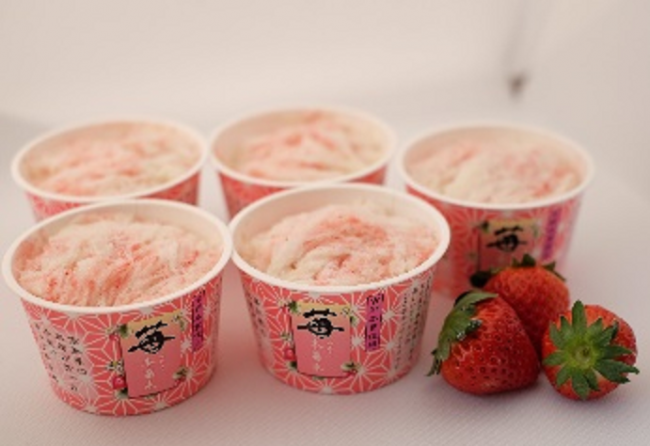 「苺氷り本舗 本葛氷(苺みるく、みかん)」は冷凍商品で、イチゴは甘さだけでなくほどよい酸味がある「さちのか」と「紅ほっぺ」を使用している。価格は税抜きで1個398円。
