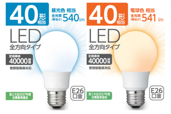 価格は全方向タイプ40形相当が1Pで298円(税込み)、2Pで498円。全方向タイプ60形相当が1Pで398円、2Pで698円。広配光タイプ100形相当が1Pで980円。