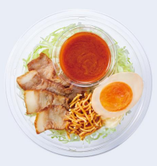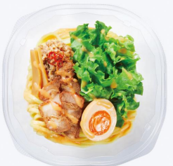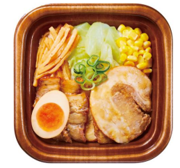 たっぷりにんにくを加えた味噌ラーメン風味ご飯に、メンマとチャーシューを合わせて、ゆでたまごをトッピングした。最後に生姜が香る仕立てにしている。本体価格は130円。
