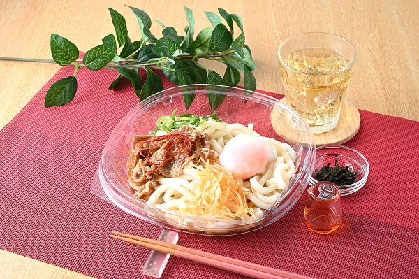 今回の「うどん」のリニューアルでは、すすりやすくのど越しの良い “つるみ” とだしのうま味を追求し、「冷したぬきうどん/冷しぶっかけうどん」「冷しピリ辛牛玉うどん」「冷し天ぷらぶっかけうどん」の合計3商品を順次発売する。なお、地域によって商品名は異なる。