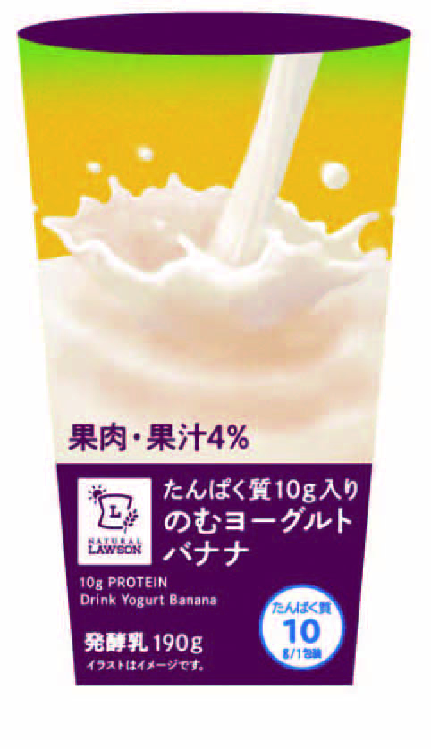 ホエイ由来の乳たんぱくを加えたバナナの果肉入りのドリンクヨーグルト。たんぱく質量は10g。