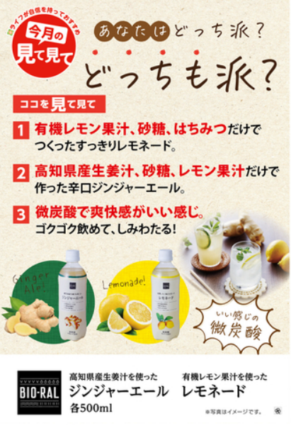 「高知県産生姜汁を使ったジンジャーエール」「有機レモン果汁を使ったレモネード」は、ライフが自信を持っておすすめする「今月の見て見て」の6月商品に選ばれている。